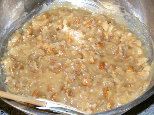 Remove from heat and whisk in the vanilla. Pour mixture over the refrigerated coconut and pecans, stirring to combine. Cool to spreading consistency, stirring occasionally.