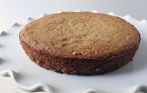 In a separate bowl, combine the almond flour, salt, and baking soda, then gently fold into the egg mixture. Spoon the batter into cake pan.