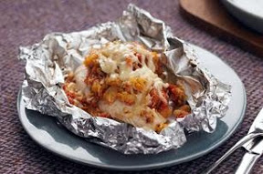 PLACE 1 chicken breast on center of each of 6 large sheets of heavy-duty foil sprayed with cooking spray; top with basil, stuffing mixture and cheese. Bring up foil sides; double fold top and ends to seal each packet, leaving room for heat circulation inside. Place in 15x10x1-inch pan.