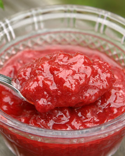 Place the pan over medium heat for 5-8 minutes until the liquid starts coming out of the strawberries and begins to boil, then turn down the heat and simmer for 20-30 minutes until rhubarb becomes a sauce, stirring occasionally.