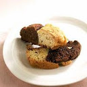 2. Divide dough in half; place each half in a bowl. Into half of the dough, stir the melted chocolate and 1/2 cup of the nuts. Into the other half of the dough, stir the orange peel and the remaining 1/2 cup nuts.