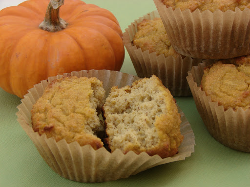 Stir together the coconut flour and eggs until a smooth paste forms. Stir in the butter/lard, then the pumpkin pureé and honey. Then mix in the spices, cider vinegar and baking soda.