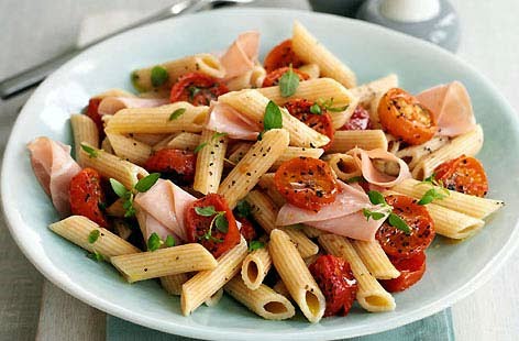 while pasta is cooking cut tomatoes in half and place in zip lock - add salt, pepper, olive oil - shake to coat