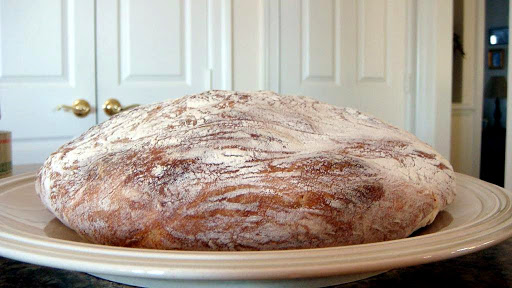 4. At least a half-hour before dough is ready, heat oven to 450 degrees. Put a 6- to 8-quart heavy covered pot (cast iron, enamel, Pyrex or ceramic) in oven as it heats. When dough is ready, carefully remove pot from oven. Slide your hand under towel and turn dough over into pot, seam side up; it may look like a mess, but that is O.K. Shake pan once or twice if dough is unevenly distributed; it will straighten out as it bakes. Cover with lid and bake 30 minutes, then remove lid and bake another 15 to 30 minutes, until loaf is beautifully browned. Cool on a rack.