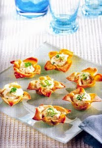 Mini Crab Rangoon: Use 24 wonton wrappers. Gently place 1 wonton wrapper in each of 24 miniature muffin cups sprayed with cooking spray. Fill evenly with crabmeat mixture and bake as directed. Makes 12 servings, 2 appetizers each.