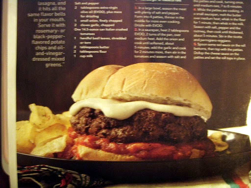 4. While the patties are cooking, in a small saucepan, melt the butter over medium heat; whisk in the flour for 1 minute, then whisk in the milk. Season with salt, pepper and the nutmeg, then cook until thickened, about 5 minutes. Stir in the ricotta and parmigiao-reggiano.