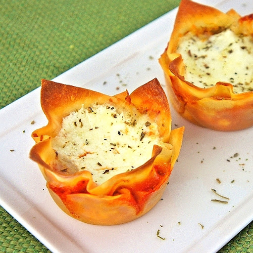 1. Heat oven to 375. Spray a muffin pan with cooking spray and place one won-ton wrap in each cup.