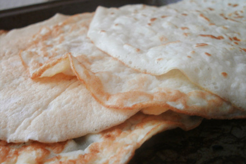 Pour all the batter on a heated pan greased with coconut oil or butter (grease well). Pour batter in center of pan. Tilt the pan around to spread the batter into a large circle, almost covering the entire bottom of the pan.