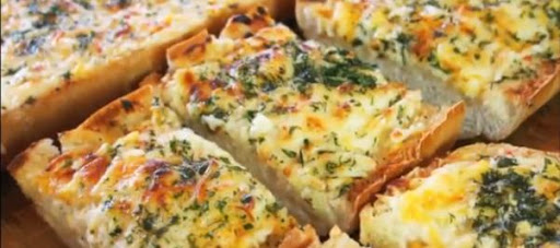 Place bread on cookie sheet, cut side up. Spread with butter mixture. Top with shredded cheese and parsley. Bake, uncovered, at 375 degrees for 10 to 20 minutes until cheese is melted and bubbly.