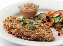 2. In shallow dish, mix together 1/4 cup peanut sauce and mayonnaise. In another shallow dish, mix together panko and peanuts. Dip chicken in peanut sauce mixture, then dip in panko mixture. Place on baking sheet.