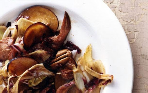 Add fennel and radicchio to dressing with plums and pecans and toss well.