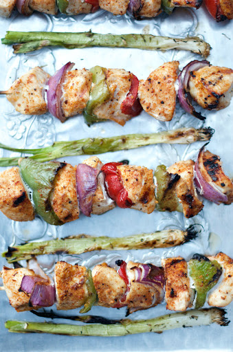 Grill over medium heat for 10 to 15 minutes or until chicken is cooked through and vegetables are tender, turning frequently.