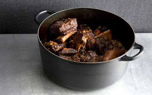 Pat short ribs dry and season with 2 1/2 tsp salt and 1 tsp pepper. Heat 2 Tbsp oil in a wide 6- to 8-qt heavy pot over medium-high heat until it shimmers.