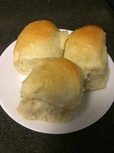 Scald milk, add sugar, shortening, salt and cold water. Add eggs. Measure lukewarm water into large bowl. Add tsps. Sugar and the yeast. Let stand 10 minutes. Stir in warm milk mixture and half of the flour. Add rest of flour, knead for 10 minutes. Place in bowl, let rise until double. Knead down, let rest for 10 minutes, make into buns, let rise until double. Bake at 400F for 15-20 minutes.