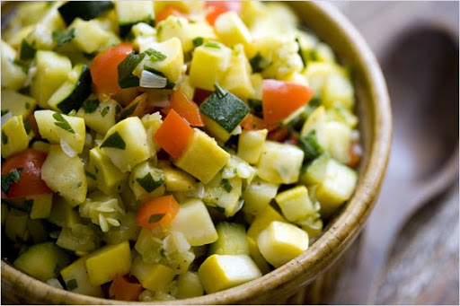 Summer Succotash with Black Beans: 5 minutes after adding the squash, add kernels from 2 ears of sweet corn and 1 can of drained black beans or 1 1/2 cups shelled edamame, then proceed with the recipe. If you wish, add 2 tablespoons (or more) of chopped cilantro. This makes a great filling for tacos (sprinkle with queso fresco or feta and serve with salsa).