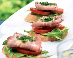 These neat little packets are quick to assemble and need less than 2 minutes on the barbecue. Prosciutto, sliced paper thin, sticks to itself when folded. Purchase largish centre-cut slices, about 8 x 31⁄2-inches (20 x 9-cm). Use your favourite fresh herbs.