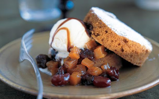 • PUMPKIN CAKE WITH SAGE ICE CREAM AND PUMPKIN CHERRY COMPOTE