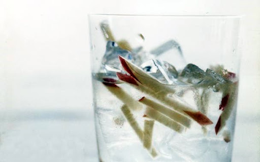 Strain about 1/4 cup soju into each glass, then add some apple pieces to each glass.