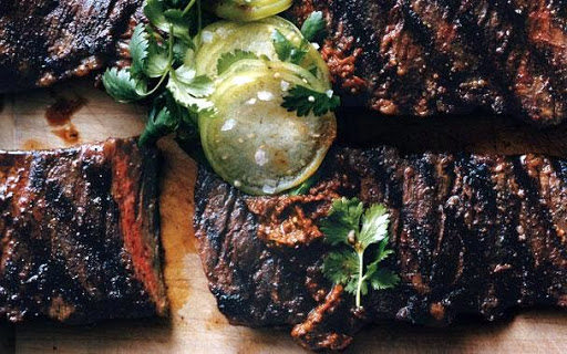 GRILLED SKIRT STEAKS w/TOMATILLOS 2 WAYS
