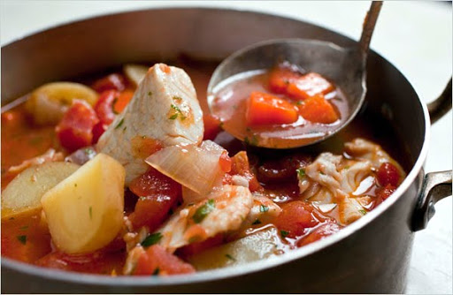 - This is a typical fishermans stew. No need to make a fish stock; water, aromatics and anchovies will suffice.