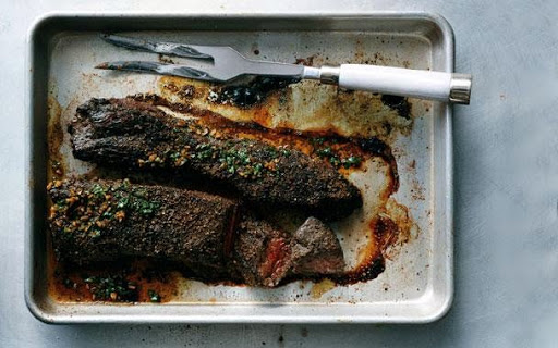 - 1 hanger steak (about 2 lb and 1 1/2 inches thick), center gristle removed