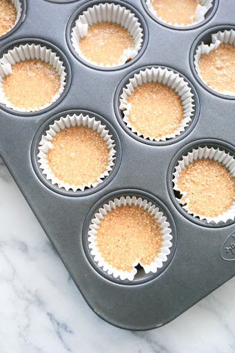 Puff quinoa over a stove as described underneath photos above and set aside. In a saucepan over low heat, combine the peanut butter, coconut butter, coconut oil, maple syrup, and vanilla extract. Stir for 3-4 minutes or until the mixture is completely melted and smooth. Next, turn off the stove and pour the puffed quinoa into the melted peanut butter mixture. Line a muffin tin with 12 muffin liners. Scoop 2 tablespoons of the quinoa mixture into each muffin liner and smooth the tops with a spoon if needed. Place the muffin tin in the freezer for 1 hour to set. Once the cups have set, they can be transferred to the refrigerator to store. Do not leave at room temperature or they will melt!