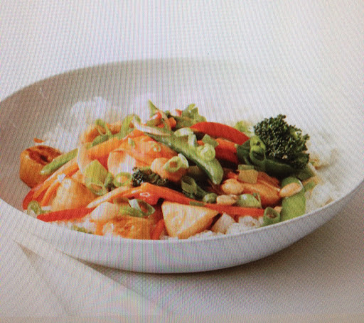 instructions Pour the sauce over the chicken and toss to coat. Allow mixture to come to a boil and cook just until thickened and shiny. Serve over your favorite rice and garnish with the cooked peanuts and the green parts of scallions.