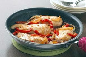 HEAT large nonstick skillet sprayed with cooking spray on medium-high heat. Add chicken; cover with lid. Cook 5 to 7 min. on each side or until chicken is cooked through (165ºF). Remove chicken from skillet; keep warm.