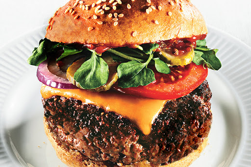 A juicy three meat burger is like heaven! You can top it with cheese and any vegetables and condiments to your liking. Or you can have it plain, either way this three meat burger is to die for!
