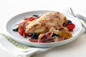 ADD dressing, tomatoes and olives; cover. Cook on medium-low heat 2 min. or until heated through; stir.