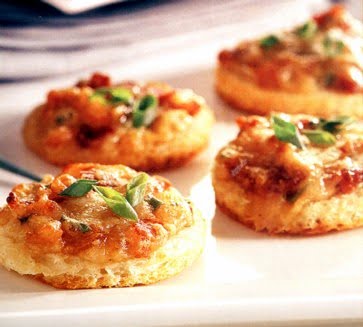 Top each bread round with 1 teaspoon of cheese mixture and place on greased baking sheets. Bake at 400°F for 8 to 10 minutes or until lightly browned. Serve immediately.