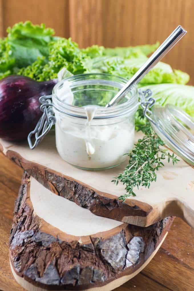 Whisk together the buttermilk, mayonnaise and sour cream in a medium bowl. Stir in the parsley, garlic, thyme, paprika, salt and pepper.