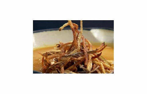 Sweet Potato Soup with Matchstick Fries and Frizzled Leeks