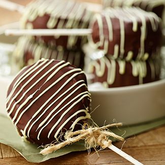 If you'd like to decorate the sandwiches, melt the white chocolate in a double boiler or microwave. Pour the chocolate into a piping bag fitted with a small plain tip. Pipe a design onto each chocolate covered ice cream sandwich. Serve cold