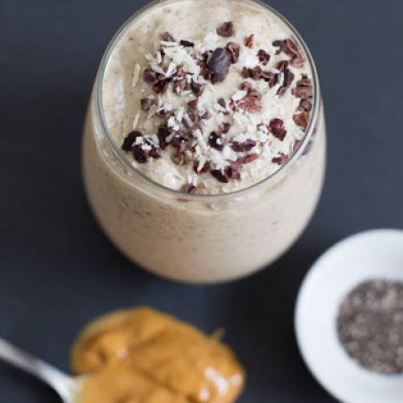 Pour into a glass and, if you'd like, top it with cacao nibs and shredded coconut. Enjoy!