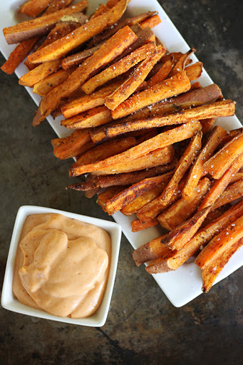 Have you had sweet potato fries? If you haven’t you are in for a real treat here. They are sweet and salty at the same time and crazy good.