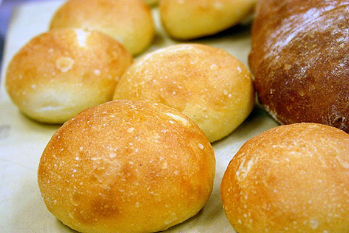 6. Bake the rolls, preferably with steam, until they are a deep golden color and firm on the sides, and feel