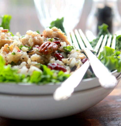 In a large bowl, toss together the cooked wild rice, diced cooked chicken, dried cranberries, pecans, onion, and parsley.
