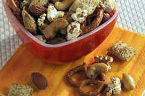 PREHEAT oven to 300°F. Toss cereal with popcorn, pretzels and nuts in 15x10x1-inch baking pan. Sprinkle evenly with salad dressing mix.