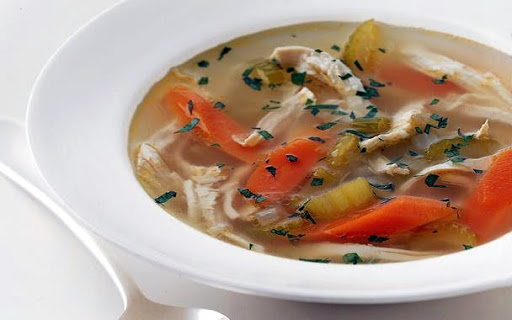 When vegetables are done simmering, stir chicken into soup along with parsley.
