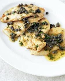 Deglaze pan and make sauce: Return pan to medium heat and add wine, scraping up any browned bits from the bottom of the pan with a wooden spoon. Cook until the liquid is reduced by half, about 30 seconds. (If the liquid is reducing too quickly -- before all the browned bits have been incorporated -- take the pan off the heat.) Remove pan from heat. Add lemon juice, capers, and remaining 2 tablespoons butter and swirl until melted and combined, then add parsley and season with salt as desired.