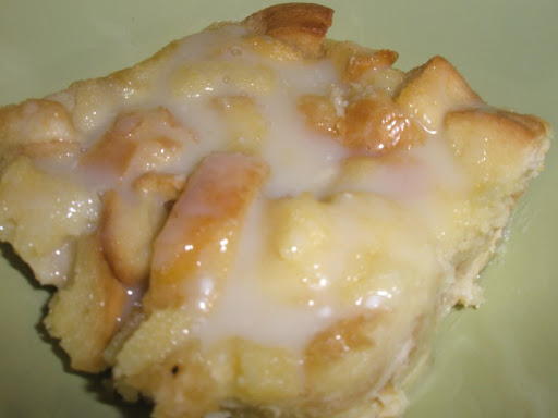 Place the bread in the baking dish & pour half the cream mixture over the bread.