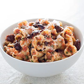 Our version of fresh pasta puttanesca uses grape or cherry tomatoes, which are excellent in summer and among the best variety of tomato available year-round. To retain fresh tomato flavor, we puree and drain them, after which their juices get cooked down briefly, while the pulp is added at the end of cooking.