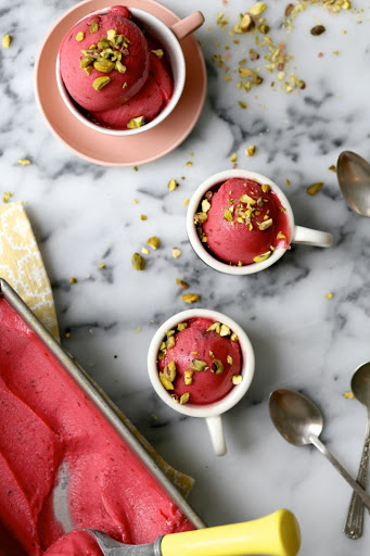 When ready to churn, remove from the refrigerator and stir in the lime juice and vodka (if using). Follow your ice cream machine instructions to churn to a thick, soft, sorbet. Transfer to a freezer-safe container and allow to rest in the freezer for at least 4 hours before scooping and serving.