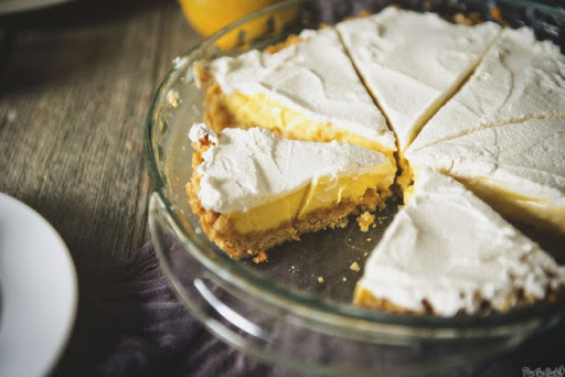 When ready to serve, make the topping. Whip the cream, sugar, and vanilla into stiff peaks in the bowl of your stand mixer fitted with the whisk attachment. Spread over the pie, slice and serve.