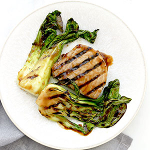 For a delicious Asian-inspired dinner, try these tuna steaks glazed with a salty, sweet, garlicky sauce. Baby bok choy is the perfect accompaniment.