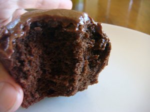 Not so eloquently I dumped it all in a bowl and whisked until smooth. I lined and filled 6 muffin tins. Baked at 375 for 13 minutes. They look identical to any other wheat filled chocolate cupcake and tasted just as good. Elana has a recipe for a vegan chocolate frosting. I used that idea but used butter, honey and cocoa powder. It was better than frosting with icing sugar. I didn’t measure anything precisely but I guesstimate that I used 5 TBSP softened butter, 1 T cocoa powder and 2 T honey and whipped it all together. I put it in the freezer for a few minutes to help it harden a bit before frosting the cupcakes.