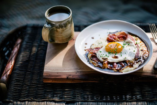 Goat Cheese Grits with Red Eye Gravy, Country Ham and Fried Eggs