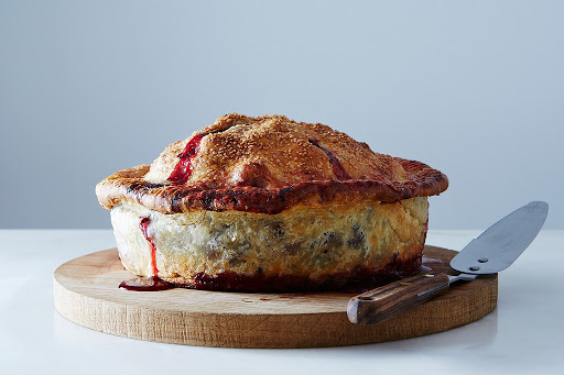 Preheat the oven to 425° F. Lightly grease a 9-inch spring form pan and place it on a baking sheet lined with parchment paper Make the pie crust: In a large bowl or in a food processor, combine the flour and salt. Add the butter and toss to coat. Cut the butter into the flour with your hands or a pastry cutter (or pulse it in the food processor) until the butter resembles the size of walnut halves. (For more on mixing pie dough, check out my article here: https://food52.com/blog/10753-everything-you-need-to-know-about-pie-crust). Add the water and mix to combine. Add more water as needed to get the dough to come together. It should not be wet or sticky. Divide the dough—you’ll need 2/3 of the dough for the bottom crust and 1/3 for the top crust. Wrap each piece of dough and chill for at least 30 minutes in the refrigerator. On a lightly floured surface, roll out the larger quantity of dough to 1/3-inch thick. Transfer it to the spring-form and trim the edge so there is 1/2-inch overhang all around. Chill the dough inside pan for at least 30 minutes in the refrigerator. Dock the chilled dough with a fork on the base and sides. Line the crust with parchment paper and pie weights, and bake until the crust is beginning to brown at the edges, 15 to 20 minutes. Remove the parchment and pie weights. If the base looks visibly wet or under-baked, return the crust to the oven without the pie weights for another 5 minutes. Cool to room temperature. While the pie is cooling. In a large bowl, combine the cherries, lemon zest and juice, and vanilla. In small bowl, mix the sugar and cornstarch to combine, then add to the cherry mixture. Mix until the cherries are evenly coated. Mound the filling into the cooled crust, pressing firmly to ensure minimal air pockets. Make a nice, rounded mound at the top. On a lightly floured surface, roll out the smaller amount of dough to 1/3-inch thick. Use a rolling pin to transfer the dough to the top of the pie. Trim away any excess dough, leaving 3/4 inch all the way around the edge. Nudge the edge down into the side of the spring-form pan so that it meets the top edge of the bottom crust. Push the crust down a bit so the excess puckers outward and creates a little lip, just like the edge of a typical pie. Press that outer lip together to seal the edges a bit, then crimp with a fork to seal. Egg wash the top crust evenly and sprinkle with turbinado sugar all over. Cut vents in the top of the pie. Transfer the pie to the prepared baking sheet and bake until the crust is very golden and the filling is bubbling through the vents, 45 to 50 minutes. If the pie is browning too much or too quickly, reduce the oven temperature to 375 and/or tent the top of the pie with foil. Cool the pie completely—seriously!—before slicing and serving. Unmold the outer edge of the spring-form pan. Slide an offset spatula around the edge of the base of the pan; if the pie is really cool and it feels solid in the middle, you’ll likely be able to pick up the pie with your hands (or a large spatula) and transfer to a platter or stand. If it feels soft in the middle, you may rather keep it on the springform base for slicing. If you’re feeling naughty, serve it with a drizzle of cold heavy cream.
