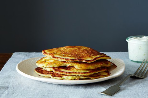 Savory Masa Corn Cakes with Green Chile, Cheese and Lime Crema